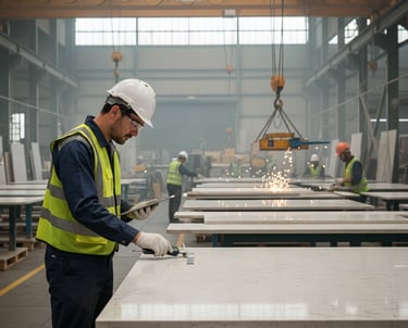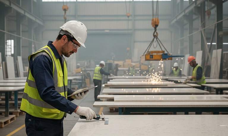 Inspección de encimeras y superficies de cocina directamente en la fábrica antes de su envío a España